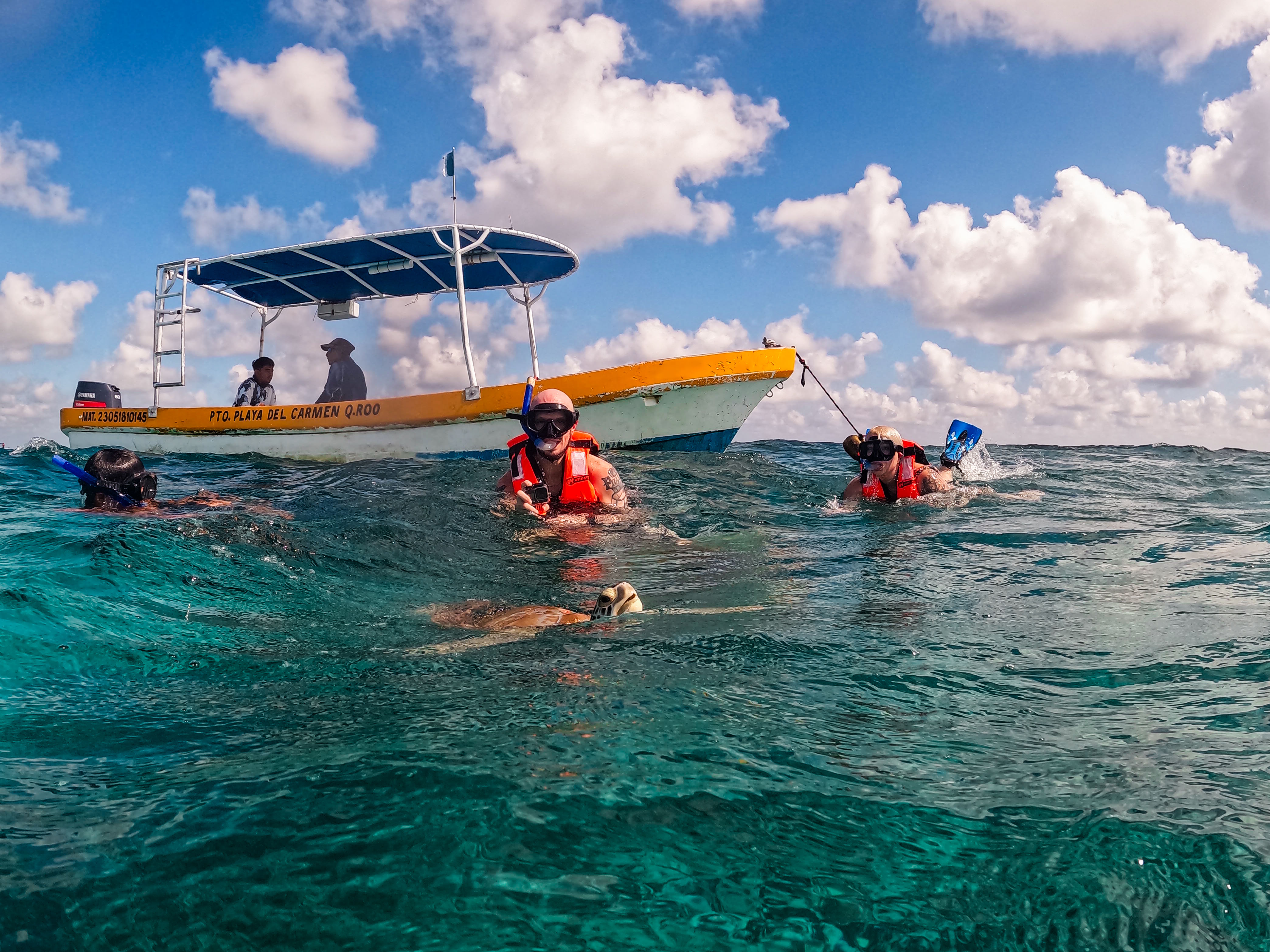 We work with love ❤️. We will wait for you at the meeting point, if you bring a car, you can park it there. We will walk a few meters to the beach where we will prepare to board the boat that will take us to the snorkeling area and the archaeological zone. We will apply security measures such as the use of the life jacket at all times. We will go directly to the front of the archaeological zone to marvel at its beauty, there we can take some photos and receive very interesting information about the history of this place. Then we will go to the snorkeling area, where we will put on the necessary equipment such as fins and glasses to dive. We will jump into the water and in the company of our staff you will be able to observe the wonders of our beautiful reef and its residents manta rays and turtles will pass in front of you. Then we will board the boat again, always in the company of our staff who will always be attentive to your safety. Then we will go again to our place on the beach to finish this beautiful experience. Our cost does not include the entrance ticket to Parque del Jaguar. Please review these costs in our exclusions section.