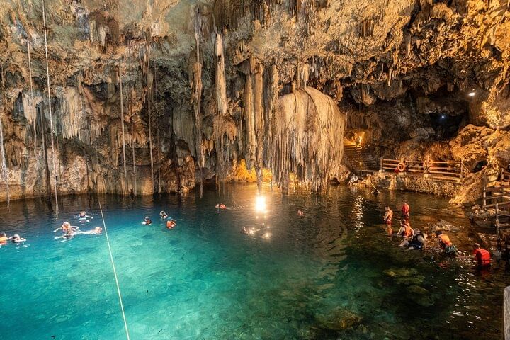 Afterwards we will take you to swim in the freshwater underground waters of two cenotes, where you can swim and take photos.